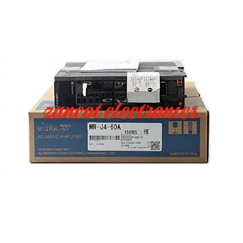 The Mitsubishi Electric MR-J4-60A Melservo J4 servo amplifier belongs to the 200-Volt AC class of amplifiers. This device is equipped with a general-purpose command interface. The output power rating of this unit is 600 watts. Additionally, the power supply voltage of this unit ranges from 200 Volts AC to 240 Volts AC. It has a 50to 60-hertz frequency rating and is compatible with one and three-phase power supply connections. This servo amplifier is compatible with various servo motors, such as catalog numbers HG-SR51, HG-SR52, and HG-JR53. This device can be used for a variety of servo applications. For instance, it is feasible to control position using a pulse train command and speed/torque using an analog voltage command. The greatest command pulse frequency it supports is 4 M pulses/second. Mitsubishi's high-speed serial optical communication allows users to create the most accurate synchronization systems. Similarly, users can connect this servo amplifier to a servo system controller to maximize the features and performance of the servo system. Its safety function type is STO (IEC/EN 61800-5-2). The MR-J4-60A complies with UKCA, CE, UL, and cUL standards. The design of this amplifier is compact. It weighs about 1.0 kilogram and has dimensions consisting of a 40-millimeter width, a 168-millimeter height, and a 170-millimeter depth. The MR-J4-60A is equipped with dynamic brakes. It also provides two (2) control methods to its users. These control methods are the current control method and the sine-wave PWM control method. This device has an IP20-rated open enclosure with natural cooling capabilities.