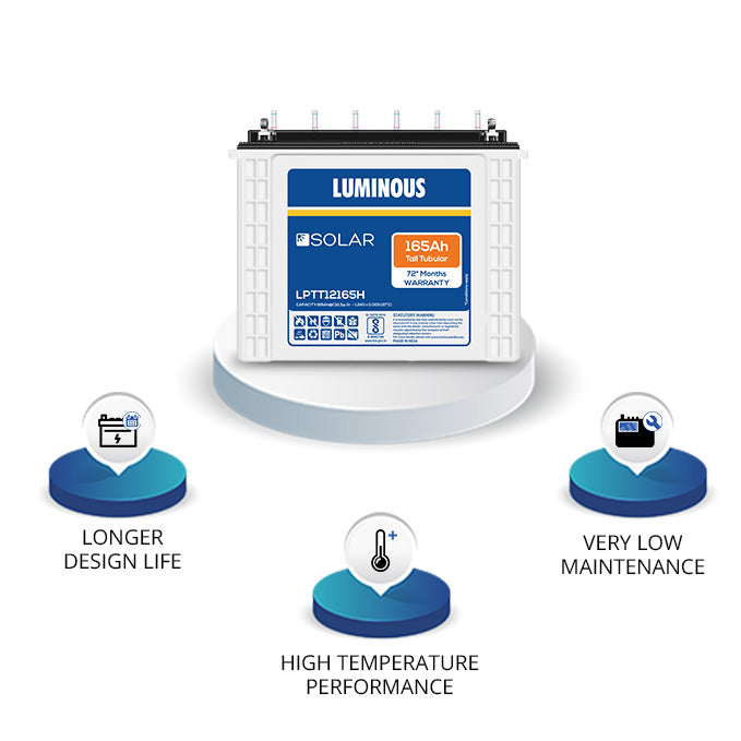 Luminous Solar Batteries are C10 rated deep cycle batteries specially designed for longer back up. Very Low Maintenance Topping up... Read more